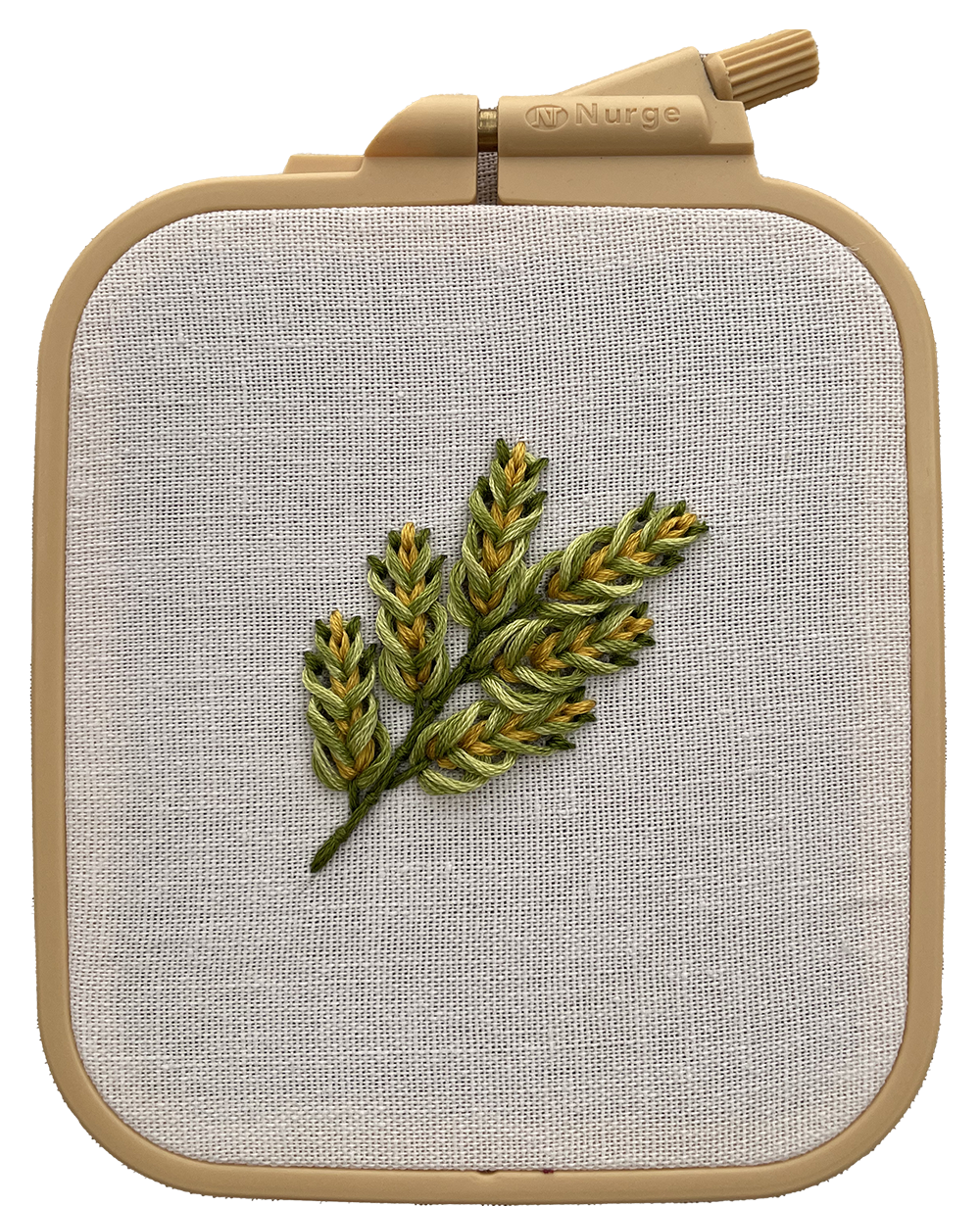 In this video for beginners, I start with a simple stitch for the stem. Next, I add shine with a golden reverse chain stitch and depth with a two-tone green chain stitch. Finally, I secure the leaf with a simple stitch. Join me for this simple embroidery design and master beautiful leaf embroidery for beginners!